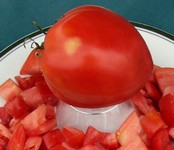 Stupice (pronounced STOO-PEECH-Ka) – A Czech variety, with smallish (larger than a golf ball) sized fruit. They are the first ripe fruits in my garden each year, around 55-60 days. Potato leaf variety. Very juicy, excellent for fresh eating. Some tendency toward green shoulders (unripe parts at the stem end). Full, complex tart/sweet tomato flavor. No other variety, hybrid or heirloom, in the under 60 day category has come close to beating Stupice for flavor. They will also continue to produce all season long, with a short hiatus during the hottest part of the summer, but pick up again as the temperature cools.
